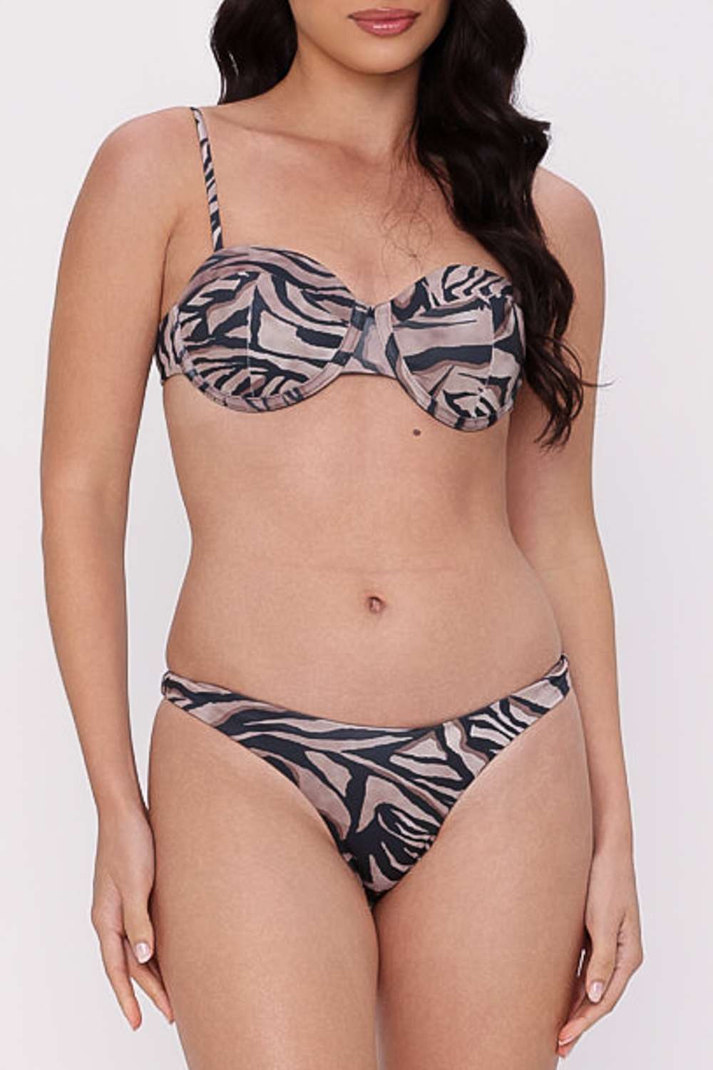 O Biquini com Duas Calcinhas é um trijunto versátil: Top estruturado com aro e estampa orgânica em tons neutros, pensado para valorizar o look de praia com praticidade. Acompanha duas opções de parte de baixo, permitindo alternar a proposta conforme a ocasião.