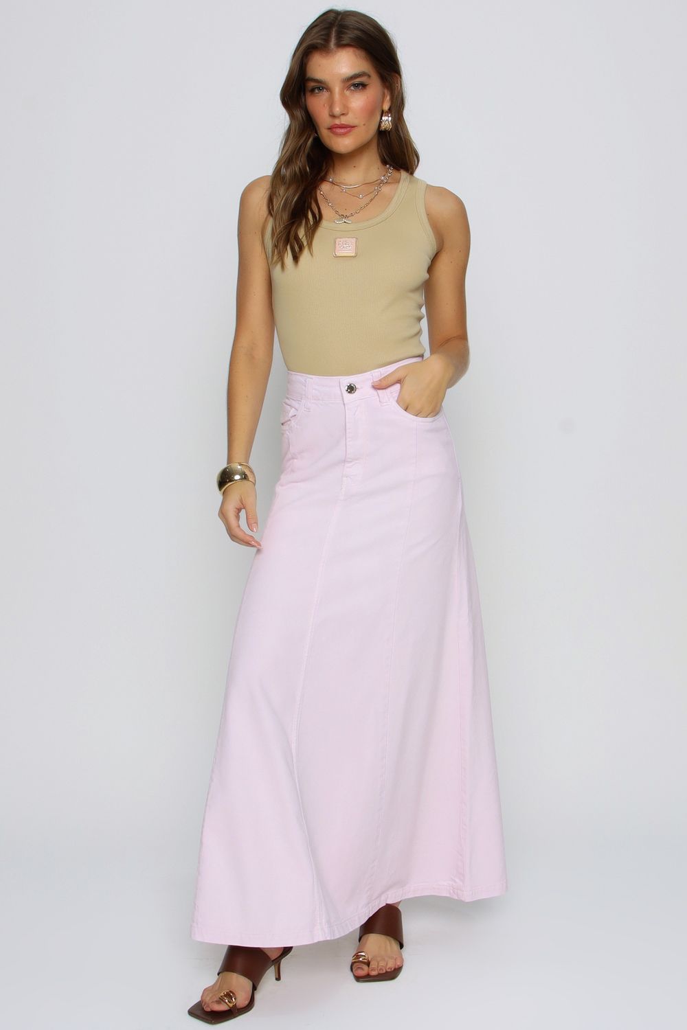 • Comprimento midi com caimento fluido