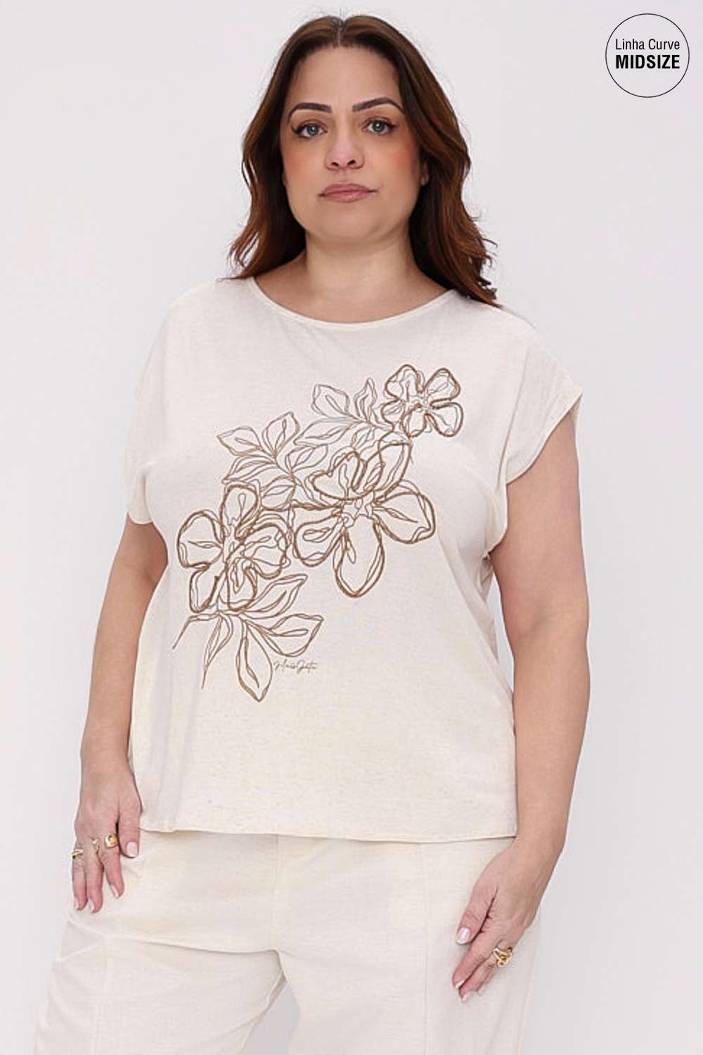 A Ampla Amanda Mais Gata surge com um visual suave e elegante, trazendo uma modelagem soltinha que realça o conforto com naturalidade. O destaque fica por conta do bordado frontal em desenho floral, que adiciona textura e um toque artístico à peça sem torná-la carregada. O caimento leve acompanha os movimentos e entrega um resultado moderno, versátil e com personalidade.