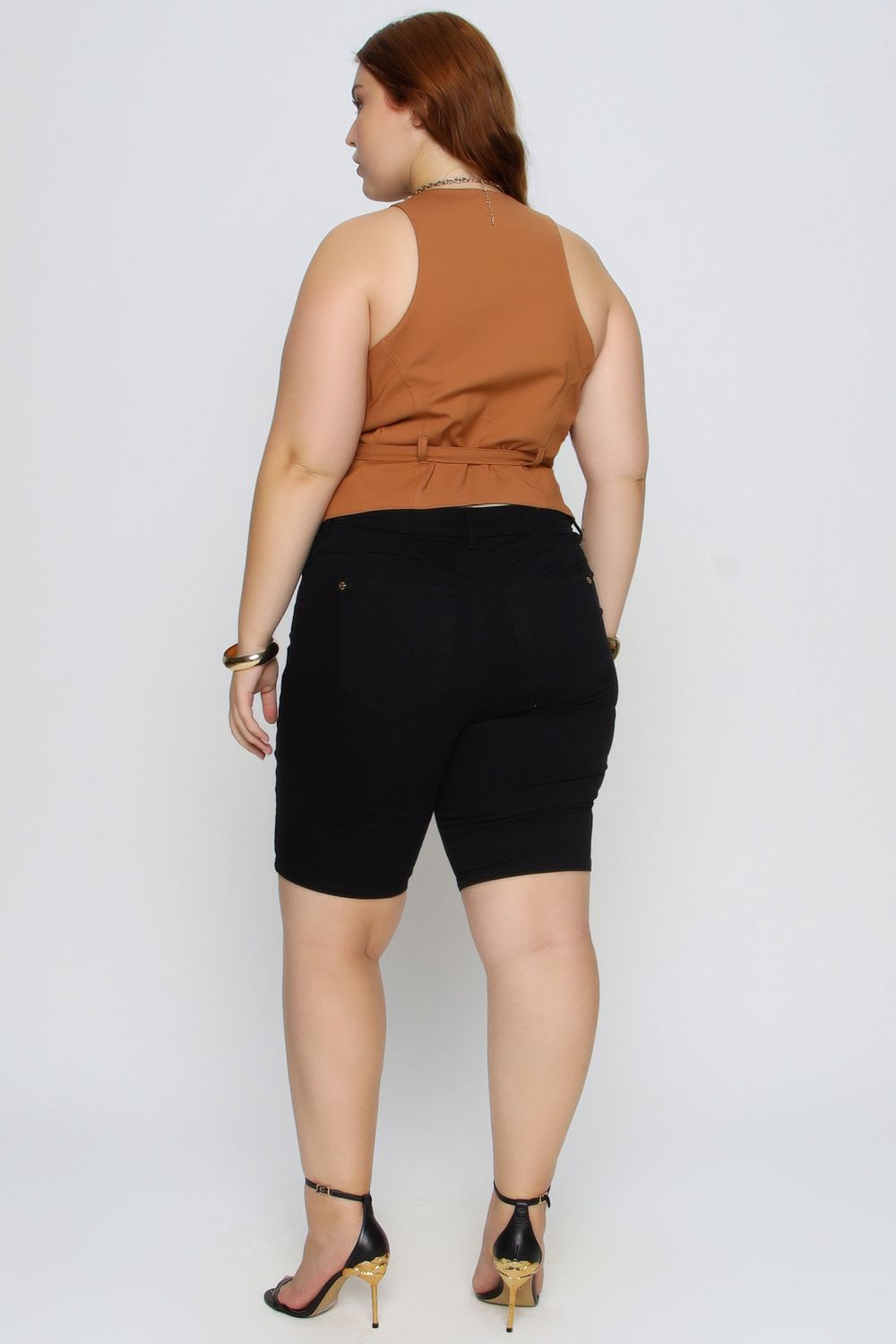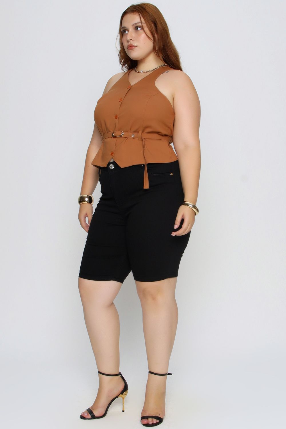 A Bermuda Emily Mais Gata é versátil e estilosa, perfeita para compor looks modernos e confortáveis. Possui modelagem ajustada, comprimento alongado e fechamento frontal que valoriza o visual, podendo ser combinada tanto com peças casuais quanto mais sofisticadas.