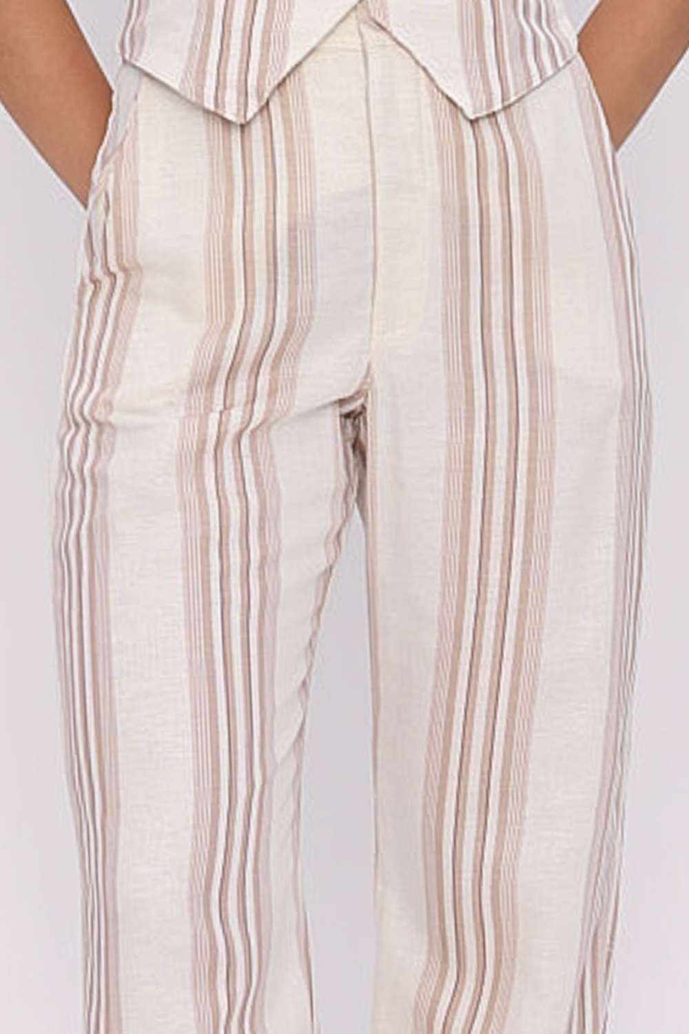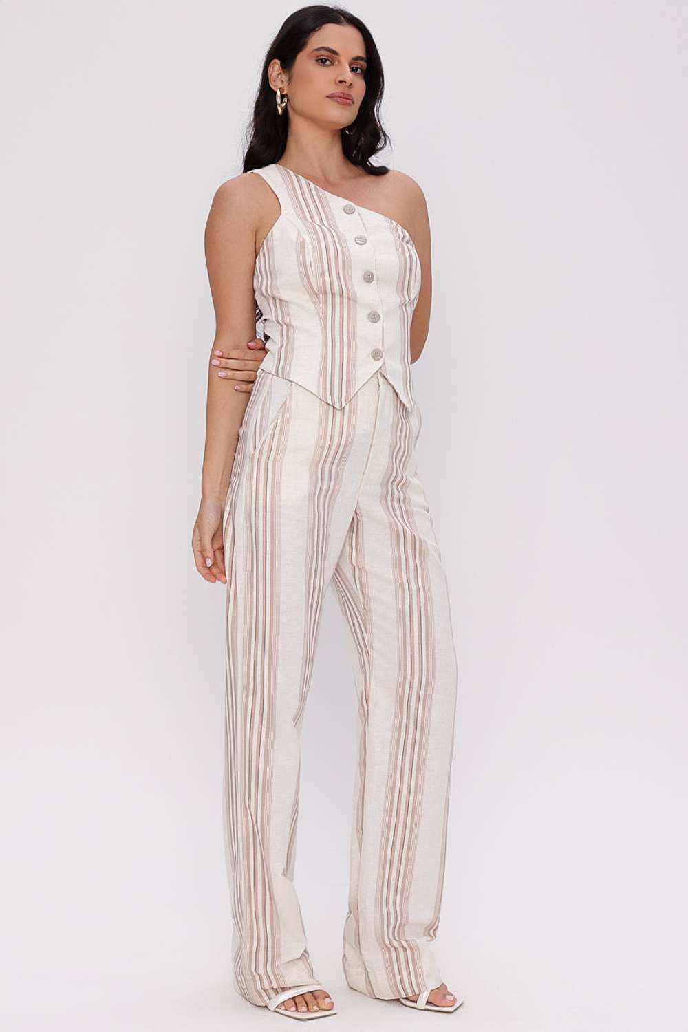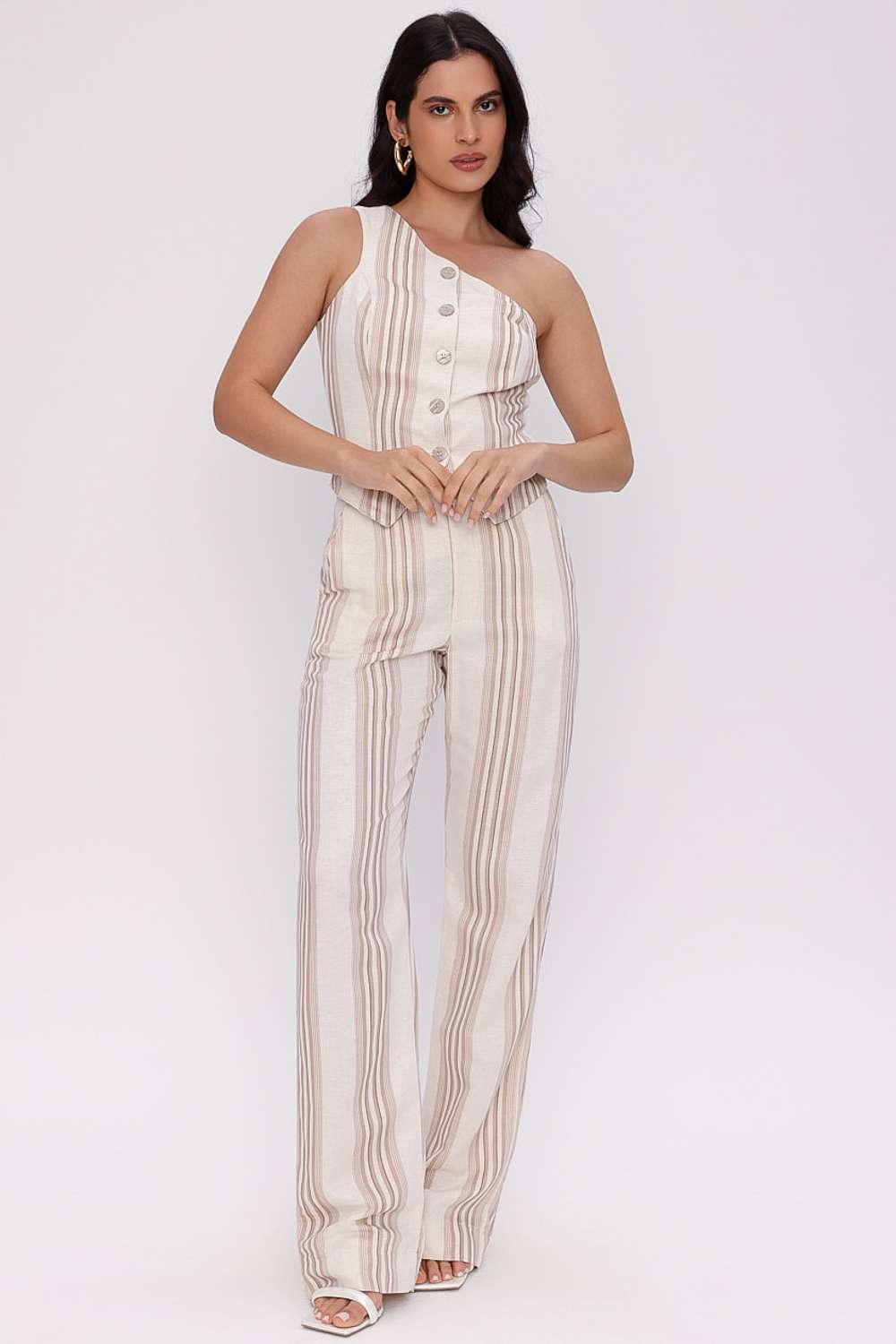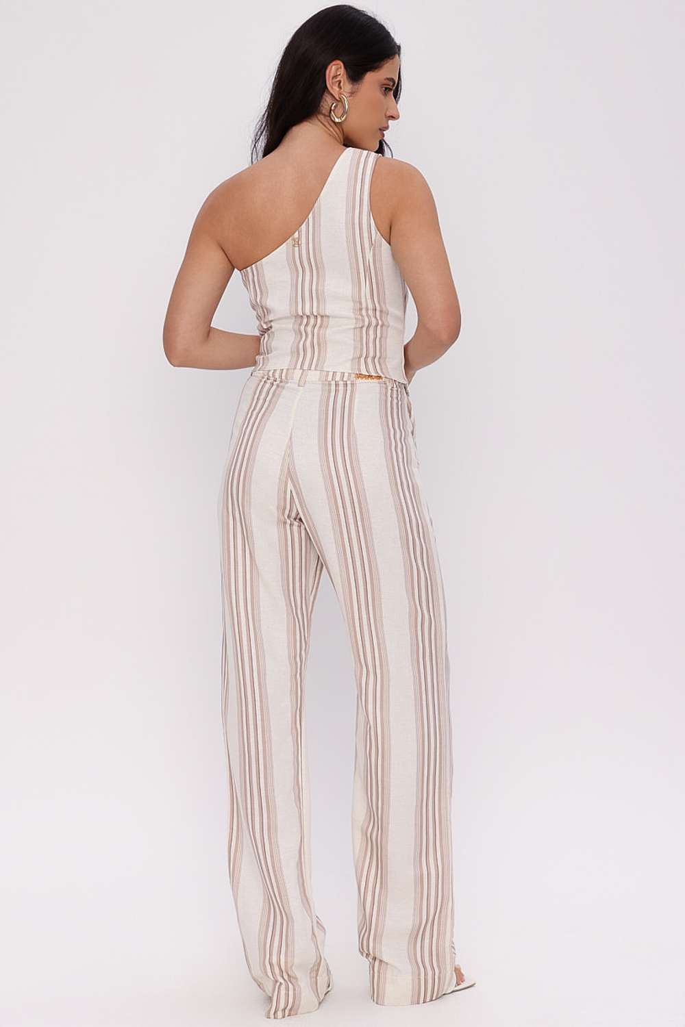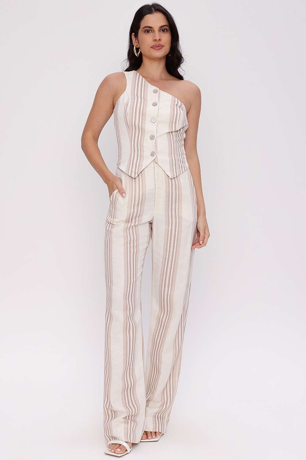 A Calça Alfaiataria Lena traz um visual elegante e contemporâneo, unindo o charme das listras verticais ao caimento sofisticado da modelagem reta. A construção em alfaiataria garante um toque moderno e alongado, enquanto o design minimalista permite composições versáteis — do look de praia chic ao urbano refinado.