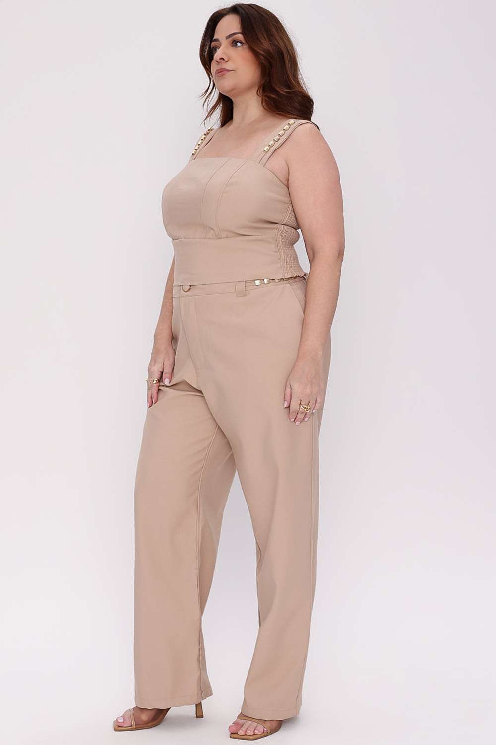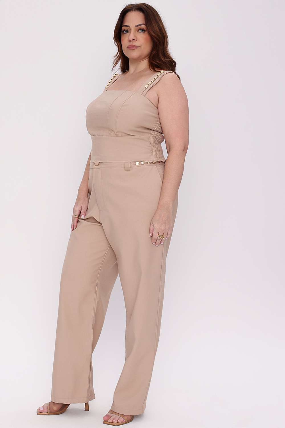 A Calça Bianca Mais Gata surge com uma proposta elegante e moderna, unindo cintura marcada, shape alongado e caimento fluido que valoriza o visual sem fazer referência ao corpo. O design limpo, acinturado e com recorte frontal traz sofisticação imediata, enquanto o comprimento reto garante movimento e versatilidade para composições do dia à noite.