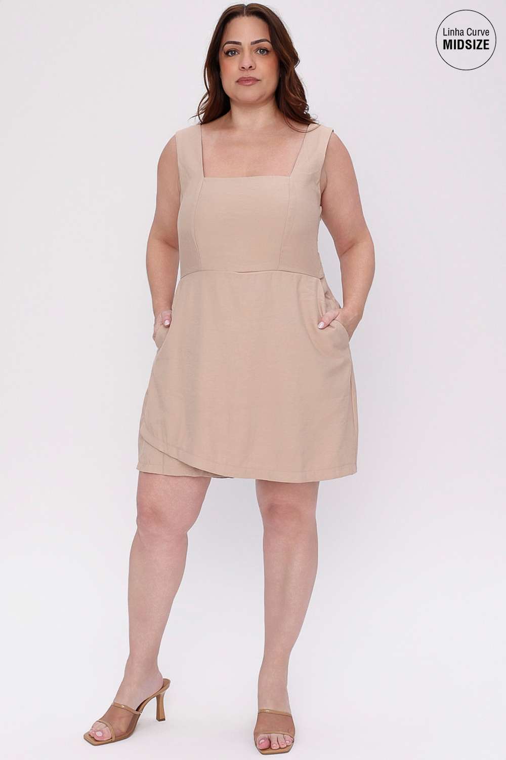 O Macaquinho Chic Mais Gata traz a proposta de peça única com visual elegante, unindo parte de cima mais estruturada com recortes frontais e short interno coberto pela sobreposição que lembra uma saia. As alças largas valorizam o colo e dão segurança ao vestir, enquanto a modelagem segue reta na parte de baixo, criando um efeito alongado e moderno.