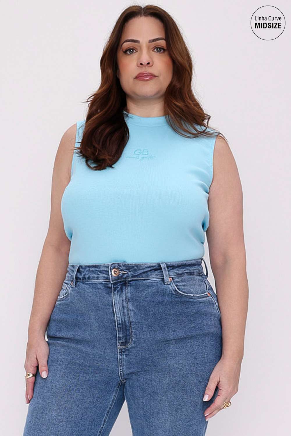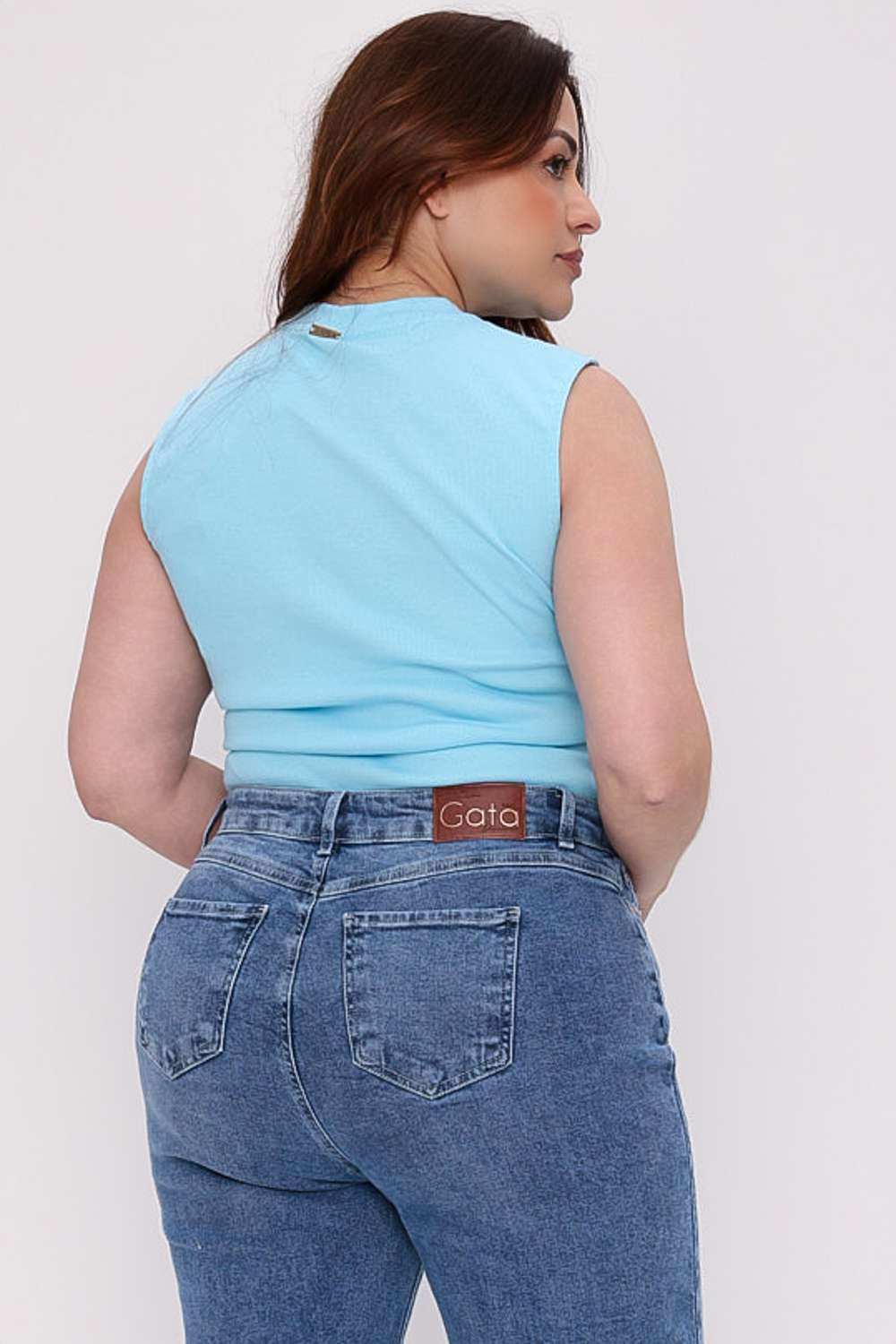 A Regata Canelada Mais Gata aparece em modelagem justa com cava mais fechada e decote arredondado, valorizando a região dos ombros com visual moderno. O bordado discreto frontal reforça a identidade da marca e deixa a peça pronta para entrar em produções casuais ou arrumadas com facilidade.
