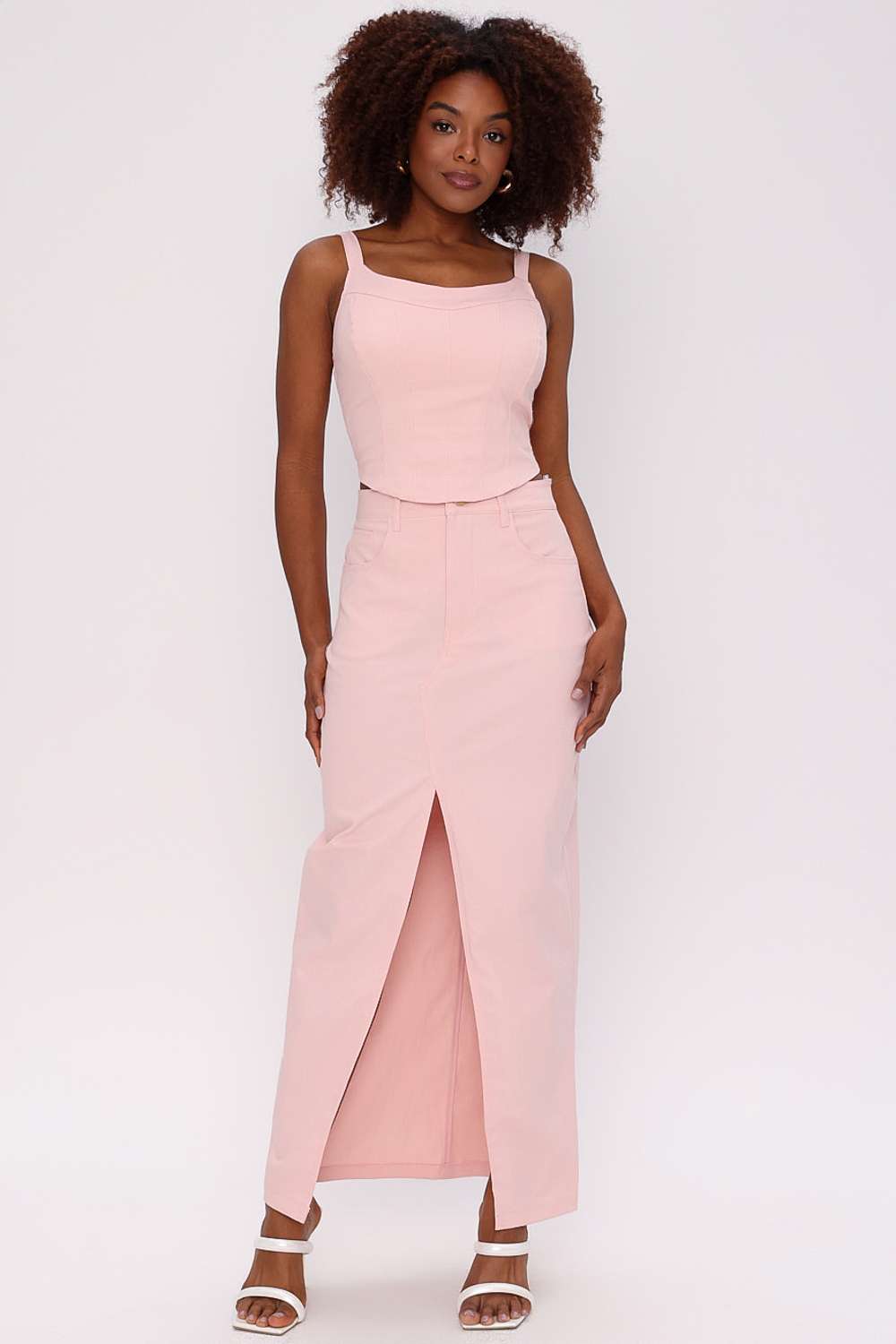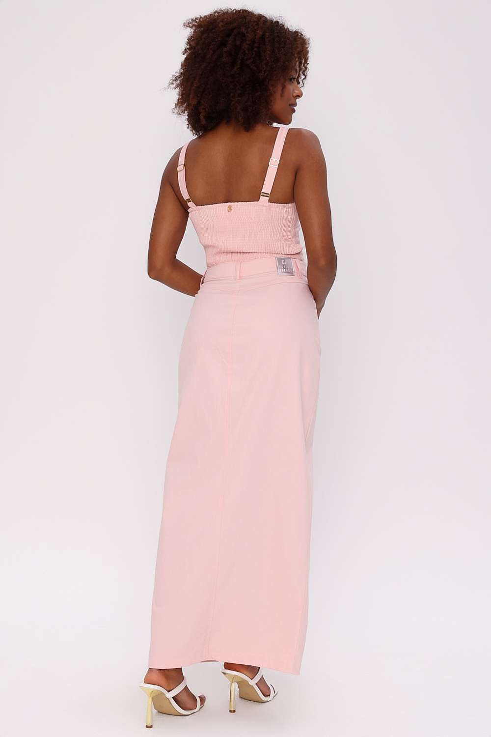 A Saia longa ST apresenta um visual contemporâneo e elegante, com caimento estruturado e fenda frontal que alonga a silhueta e traz movimento. A modelagem reta combina sofisticação e modernidade, tornando a peça perfeita para compor produções versáteis do dia à noite.