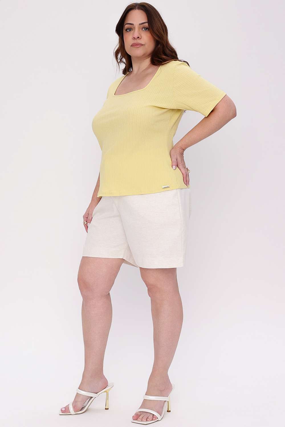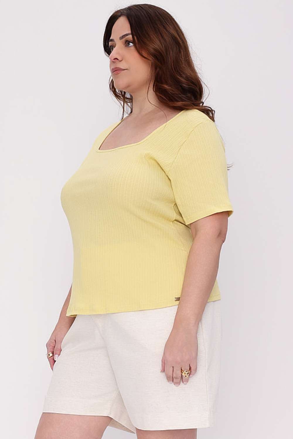 A T shirt Flora Mais Gata surge com uma proposta delicada e feminina, unindo o visual minimalista ao charme da textura canelada que destaca a peça sem exageros. A modelagem com decote quadrado valoriza o desenho do busto enquanto as mangas curtas trazem equilíbrio ao look, resultando em uma composição atual, leve e perfeita para o dia a dia.