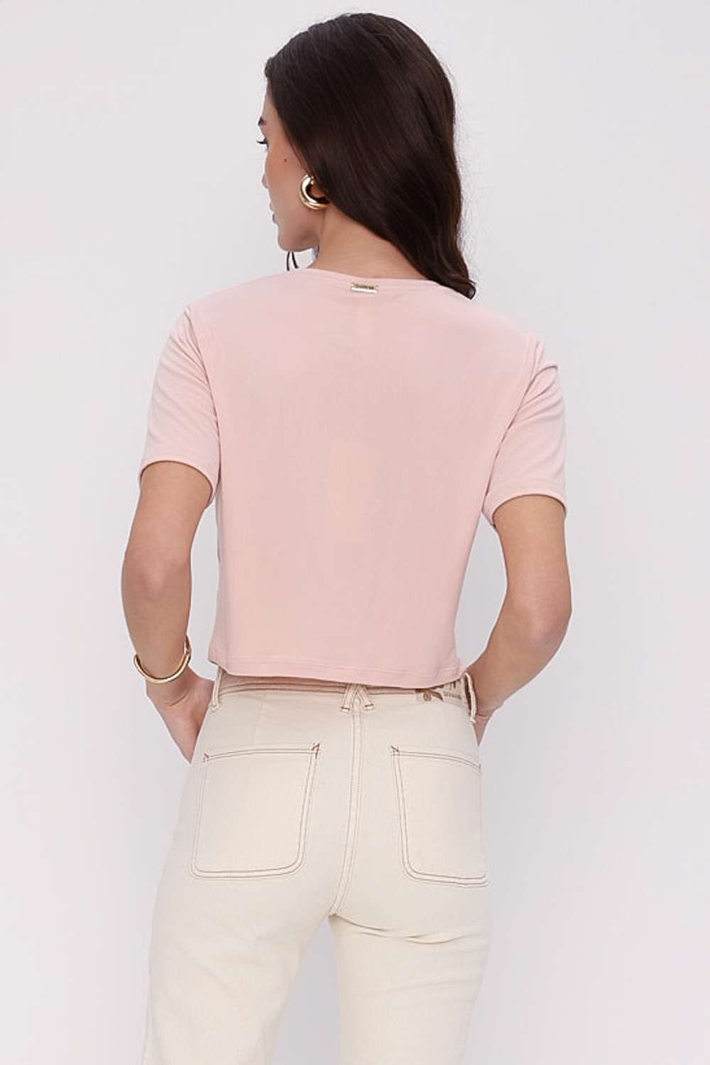 • Comprimento cropped que harmoniza com diferentes cinturas